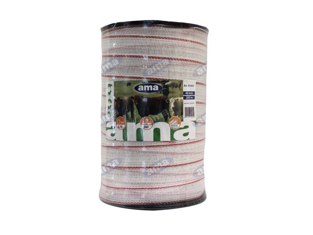 Rotes und weißes leitfähiges Zaunband. Länge 200 m, Breite 40 mm.