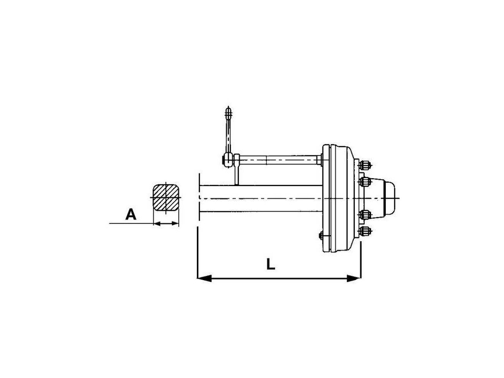 Achse mit Trommelbremse 300x60 mm, 6 Schrauben für Scheibenmontage, max. Geschwindigkeit 40 km/h