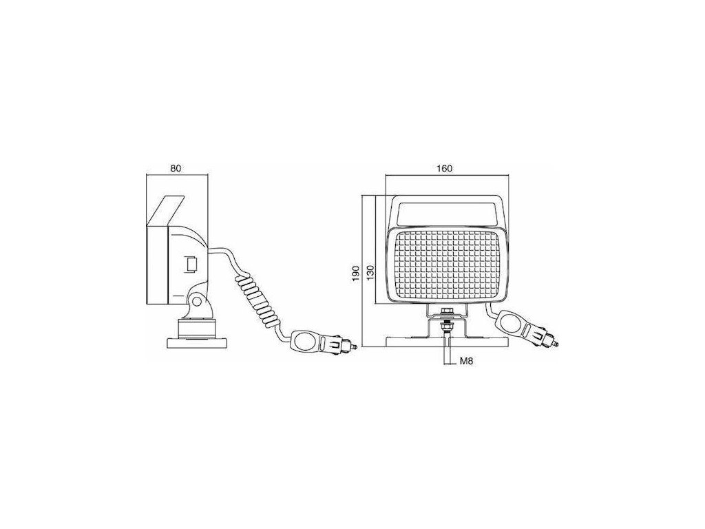 Arbeits-Halogenleuchte 156x92 mm, mit Griff, Schalter, Magnethalterung