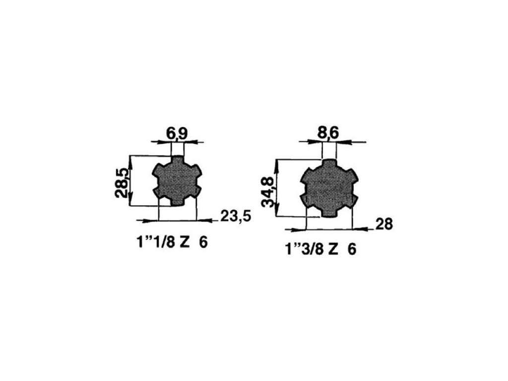 | Außenprofil: | 1"3/8 Z6 (6 Zähne 35 mm) |