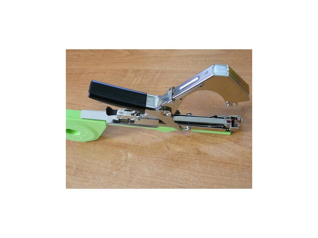 Universelle Bindezange für die einfache und schnelle Befestigung von Sommerpflanzen an Stützdrähten. Für die Arbeit werden spezielle Bindeklammern und Bänder verwendet. Sie werden hauptsächlich im Weinberg, in verschiedenen Gärtnereien und zu Hause im Garten verwendet.