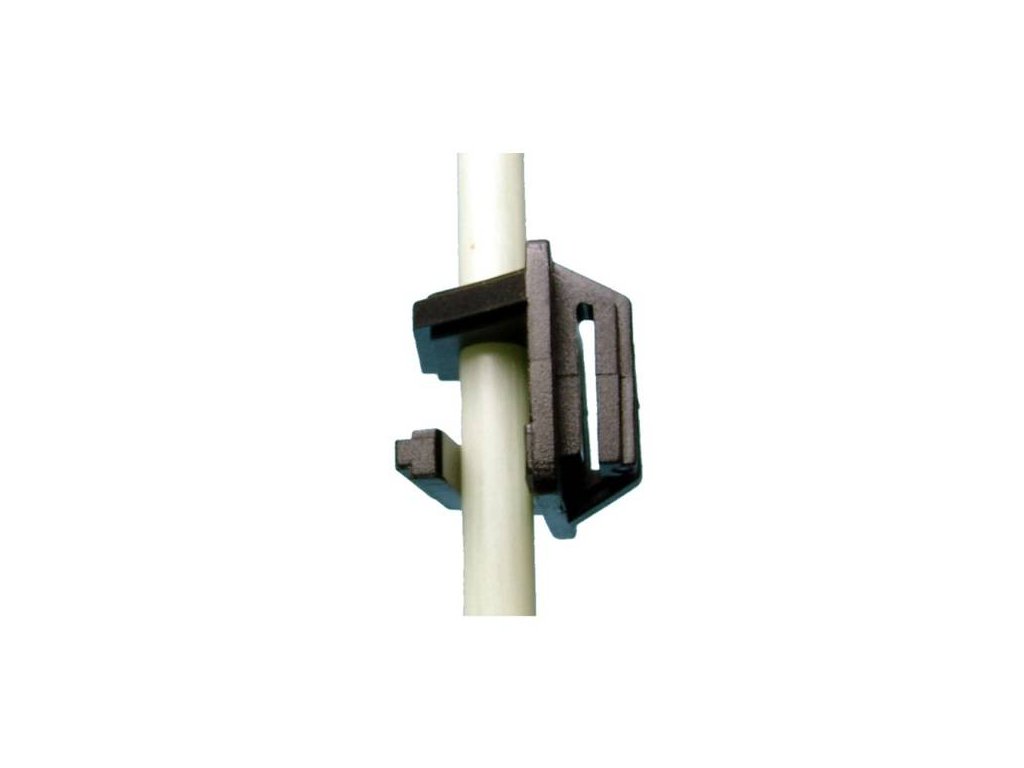 Aufschiebbarer Isolator geeignet für Kabel mit einem Durchmesser von bis zu 3 mm oder Band mit einer Breite von 10 mm. Dieses Modell wurde speziell entwickelt, um mittels einer Kunststoffklemme (I044) an einem Fiberglaspfahl mit einem Durchmesser von 10 mm fixiert zu werden. Die Montage erfolgt einfach, indem die Klemme auf die gewünschte Höhe am Pfahl geschoben und der Isolator darauf gedrückt wird. Maße: 46 x 33 x 19 mm. Gewicht: 9 g. Erhältlich einzeln oder im Set mit 100 Stück.