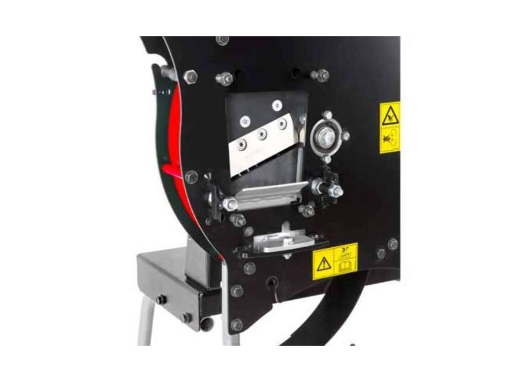 - Die Weiterentwicklung des Auswurfkanals und der Einsatz von Spezialmessern optimieren den Fluss und die Qualität des Auswurfs des zerkleinerten Materials