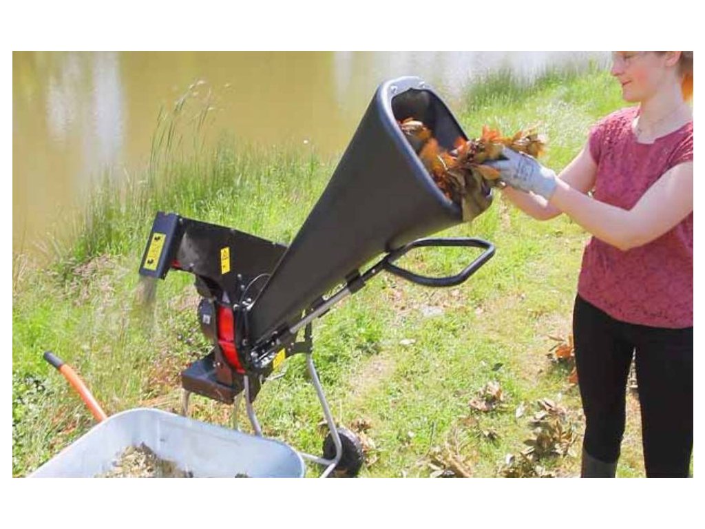 - Der Häcksler kann direkt im Anhänger oder in der Schubkarre gelagert werden