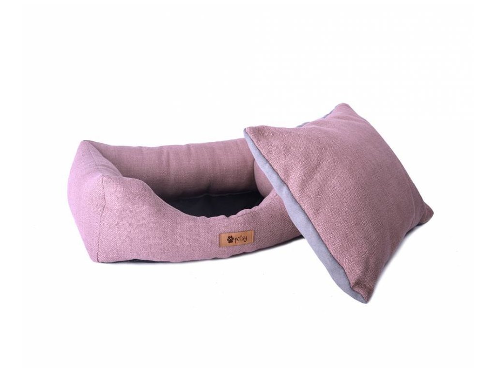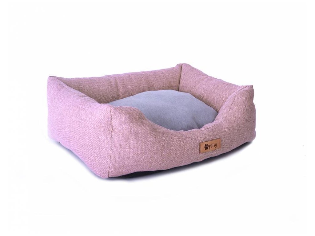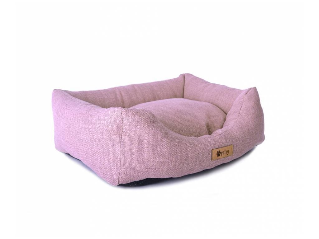 Bett aus strapazierfähigem und starkem Stoff in altrosa Farbe.