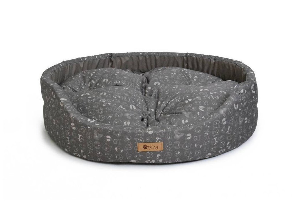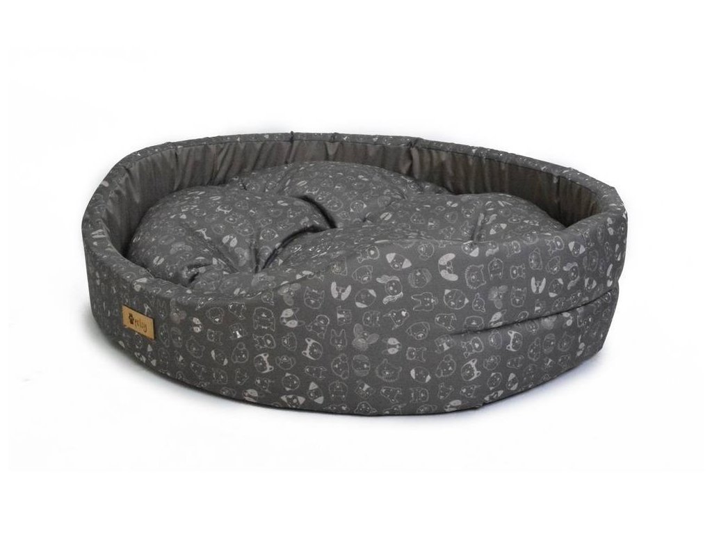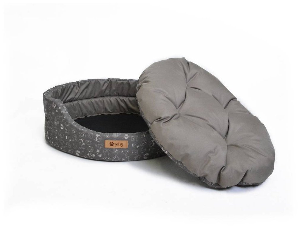 Ovales Bett mit abnehmbarem Kopfkissen.