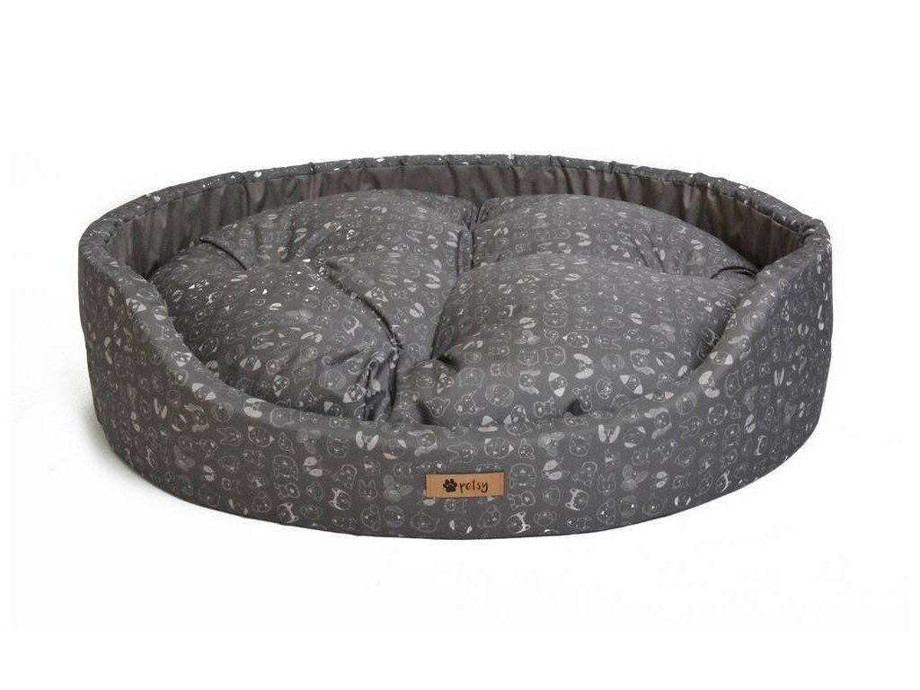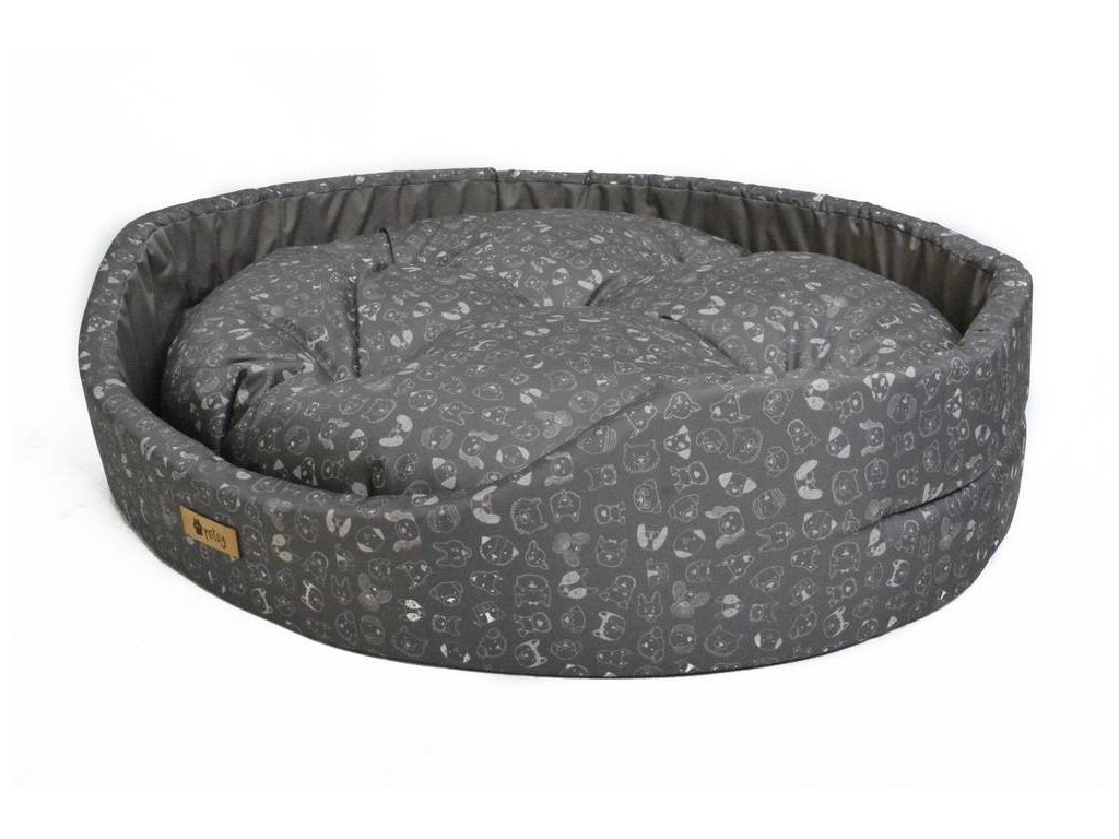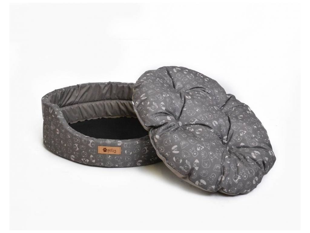 Ovales Bett mit abnehmbarem Kopfkissen.