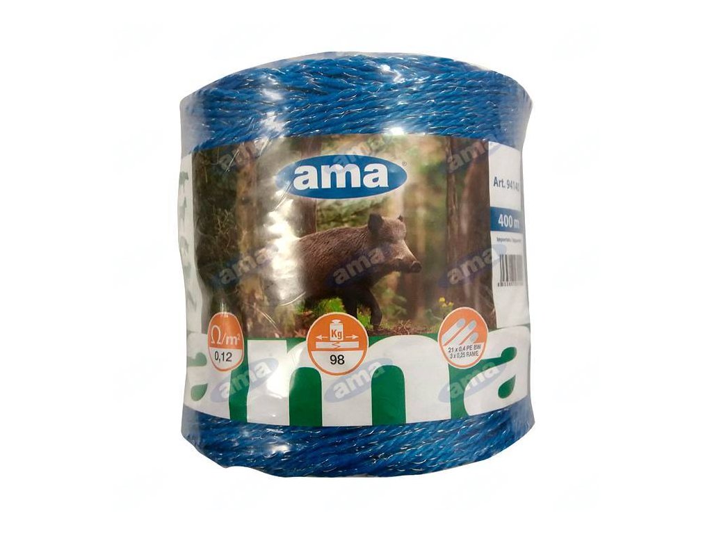 Blaues leitfähiges Seil für Wildtiere, Länge 400 m.