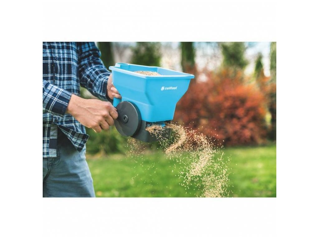 Handstreuer zum Ausbringen von Rasensamen, Dünger oder Sand. Sie können ihn insbesondere zum Düngen Ihres Rasens im Frühjahr oder Herbst und zum Streuen von Sand und Salz auf gefrorenen Gehwegen im Winter verwenden.