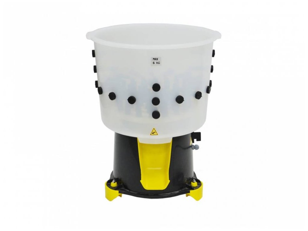 Schließen Sie zunächst den Geflügelrupfapparat an das Stromnetz an. Bevor Sie das Geflügel einlegen, müssen Sie den Rupfapparat mit dem Schalter an der Unterseite des Rupfapparats einschalten. Legen Sie das Geflügel vorsichtig in den Rupfapparat und lassen Sie ihn arbeiten. Die Rupfzeit beträgt etwa 30 Sekunden. Während das Geflügel gerupft wird, spülen Sie das Innere der Trommel mit kaltem Wasser aus, um Federn und andere Verunreinigungen aus der Trommel zu entfernen - dies erhöht die Effizienz des Federrupfens bei Geflügel. Sobald das Geflügel gerupft ist, sollte der Rupfer ausgeschaltet und das Geflügel in kaltem Wasser gewaschen werden. Für das nächste Geflügel wiederholen Sie den Vorgang, siehe oben. Wenn das Rupfen beendet ist, sollte der Rupfer gründlich von Schmutz befreit werden. Überladen Sie den Hühnerstall niemals mit mehr Gewicht als die zulässige Kapazität des Geräts. Wenn Sie die Maschine überlasten, schaltet sich der Motor ab und Sie müssen das Gewicht, das auf die rotierende Scheibe wirkt, reduzieren.