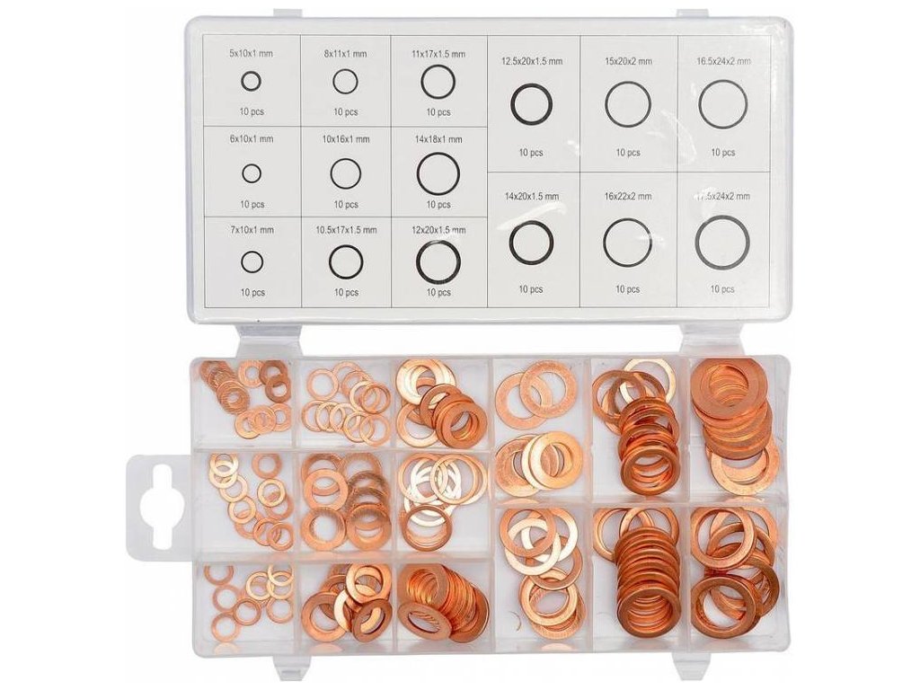 Satz mit 150 Dichtungsscheiben aus Kupfer.