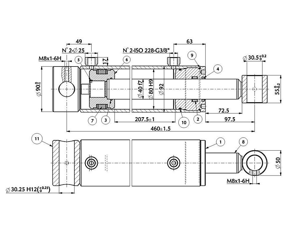 Doppelwirkender Standard-Hydraulikzylinder 80/40/207,5 - 460 mm