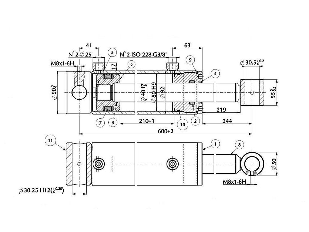 Doppelwirkender Standard-Hydraulikzylinder 80/40/210