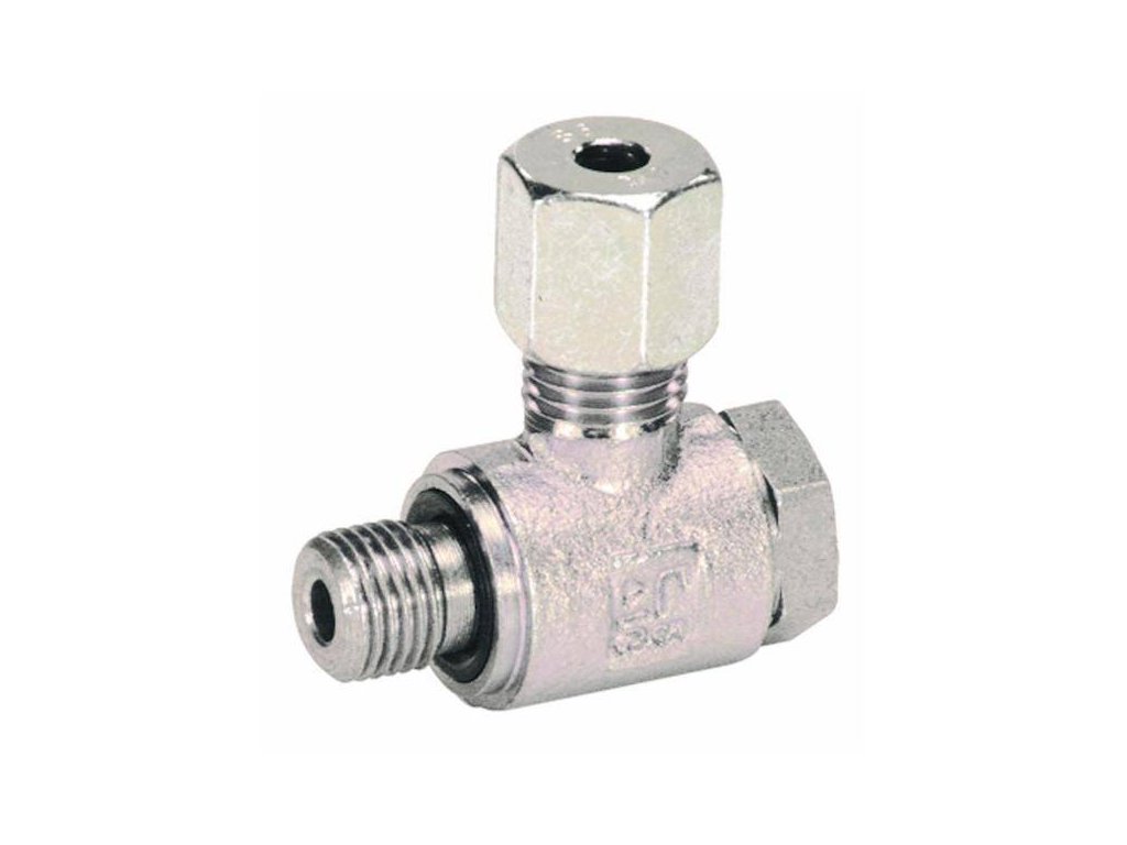 Drehbare L-Verschraubung für Hydraulikschläuche mit Anschluss von 1 x Mutter mit Schneidring an 12 mm Rohr, 1 Außengewinde 18x1,5, Typ 12L.