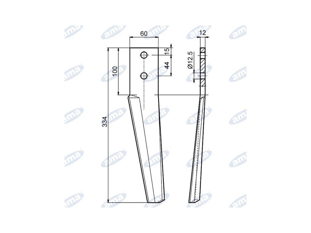 Drehbarer Torspieß rechts 334x60x12,5mm PASSEND FÜR GRAVELY, MALE, FALC, MASCHIO