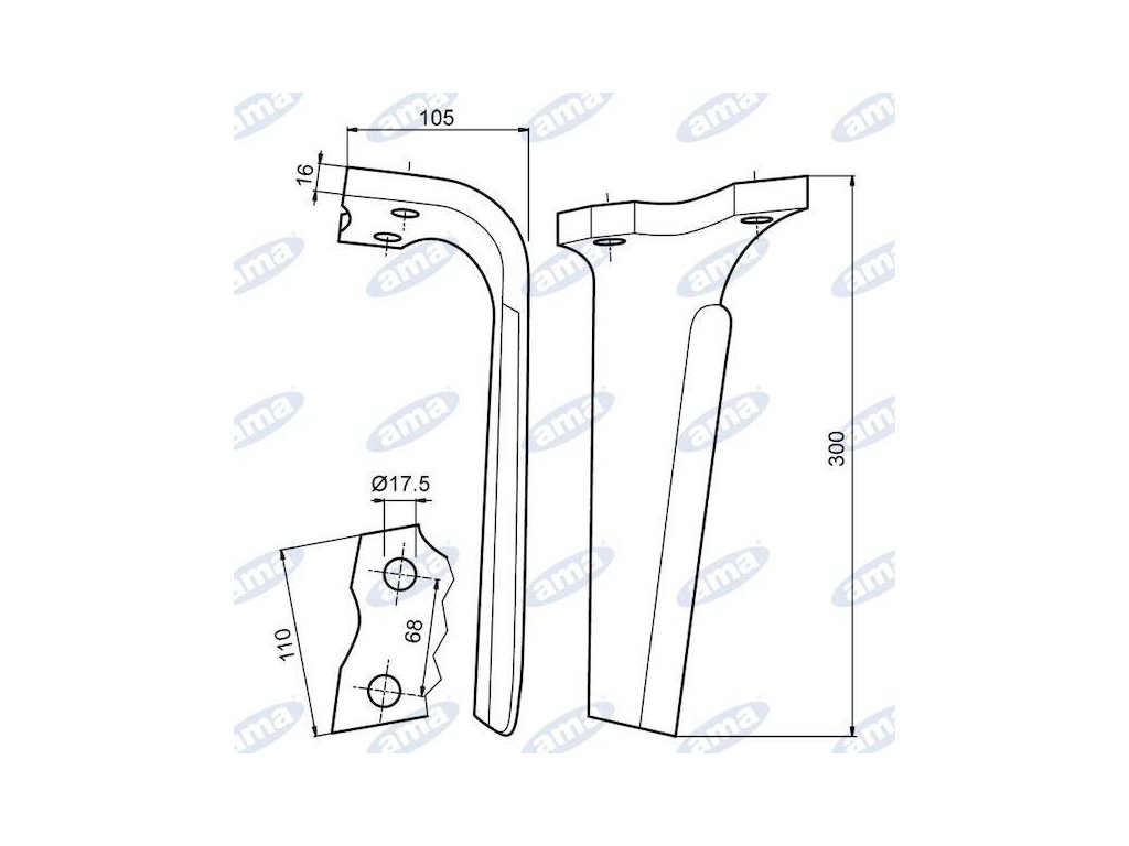 Drehtürbolzen links 300x110x17,5mm KUHN