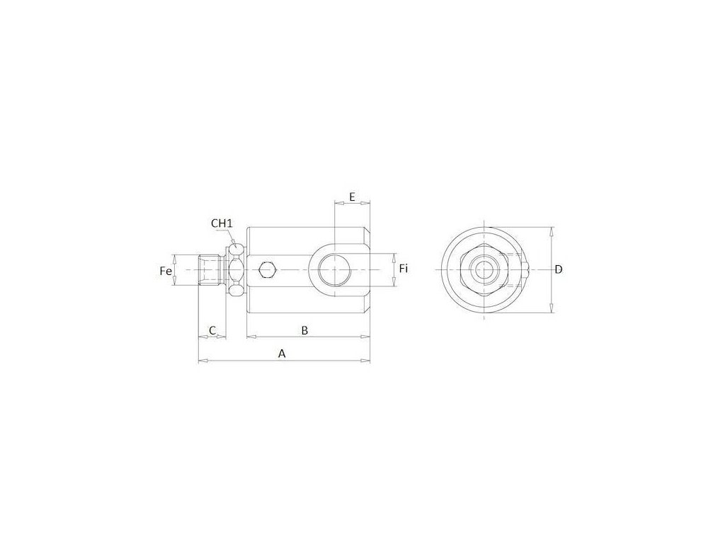 3/8"-Adapter mit BSP-Außengewinde in einem 60-Grad-Innendichtkonus und Innengewinde im 90-Grad-Winkel zum anderen Gewinde.