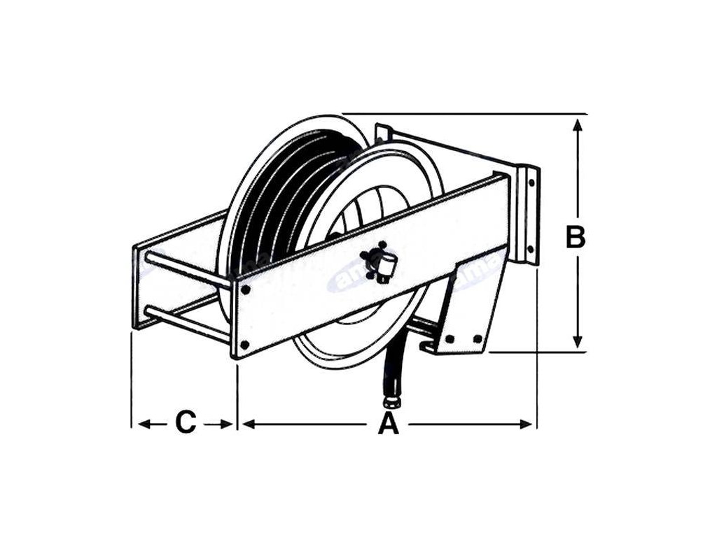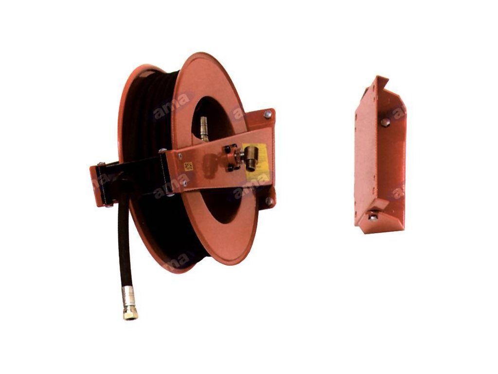 Druckschlauch auf selbstaufrollender Spule. Max. Druck 600 Bar, Gewicht 13 kg, Gewinde innen 1/2", außen 1/2", Schlauchlänge 15 m,