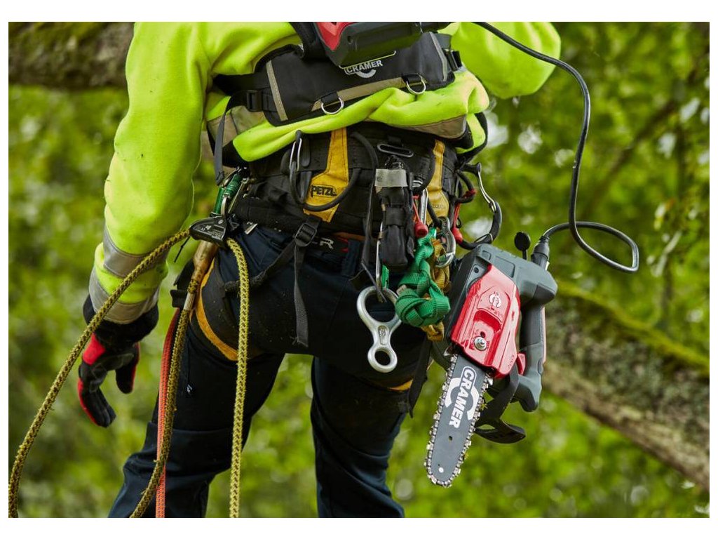 Mit der klassenbesten Handkettensäge von Cramer erhalten professionelle Anwender eine leistungsstarke und dennoch leichte Kettensäge. Mit einem Gewicht vonnur 2,1 kg ist die Cramer 82TCS15 dasleichteste Produkt auf dem Markt und bietet dank ihresleistungsstarken bürstenlosen 1,5-kW-Motors ein exzellentes Leistungs-/Gewichtsverhältnis . Seine Leistung ist vergleichbar mit 35ccm Benzinprodukten. Sie wird mit einem ergonomischen Tragegurt geliefert , der den Transport und die Aufbewahrung des Cramer 82V-Akkus erleichtert, der über ein Stromkabel mit der Kettensäge verbunden ist. Die 82TCS15 kann auch mit dem separat erhältlichen Cramer Beckengurt verwendet werden (optionales Zubehör).