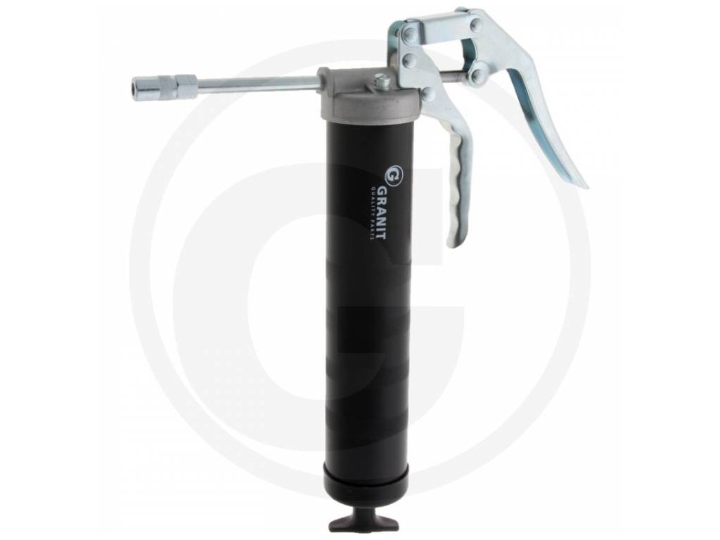 -Einhand- Fettpresse -Anschlussgewinde M 10x1-gerade mit Düsenrohr-4-Backen-Hydraulikmundstück-für 400 g-Kartuschen oder loses Fett-superstarker Pistolengriff