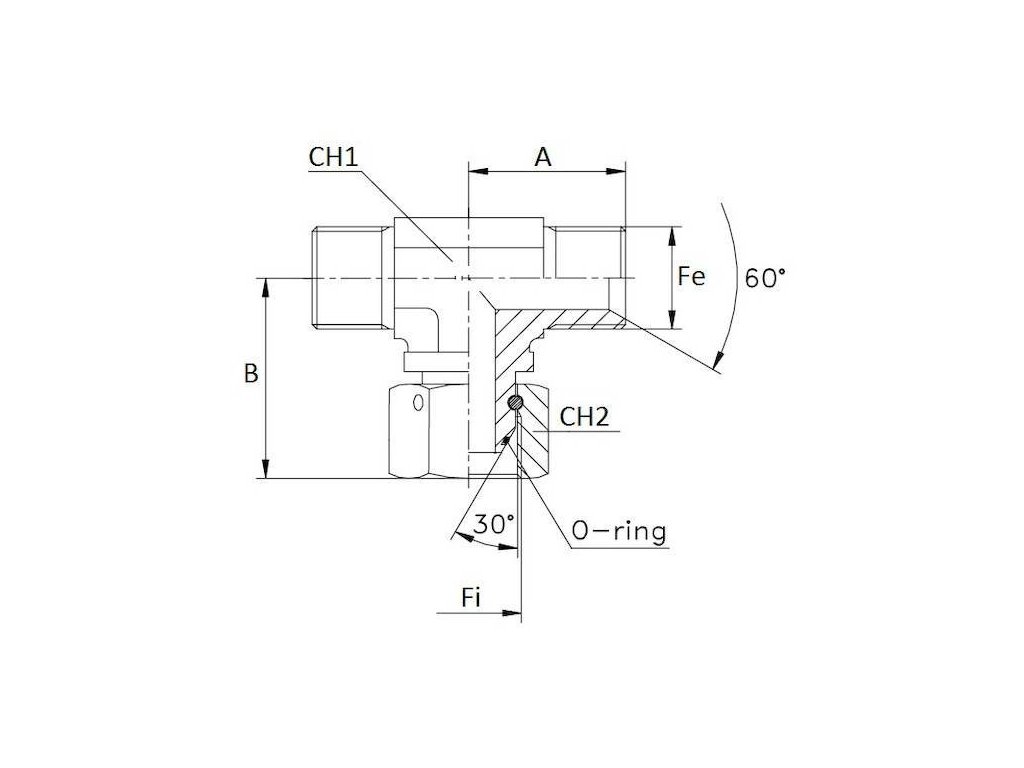 Einstellbare T-Verschraubung mit Gewinde 1/2" BSP - männlich Anschluss mit Innekonus 60 Grad + BSP - weiblich mit Überwurfmutter + BSP mänlich mit Innekonus 60 Grad.