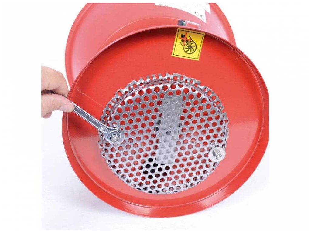 Die Leistung hängt von der gewählten Grobheit des Siebes ab und reicht von 25 bis 50 - 110 - 200 kg/Std. – je gröber die Grobheit, desto höher die Zerkleinerungsgeschwindigkeit. Der Hammerschaber wird mit einem Sieb von 7 mm Durchmesser geliefert und als Geschenk erhalten Sie drei zusätzliche Siebe von 1,5 - 2,5 - 5 mm mit einem Schlüssel zum Wechseln der Siebe. Sie haben also insgesamt 4 Siebe zu Ihrer Verfügung.