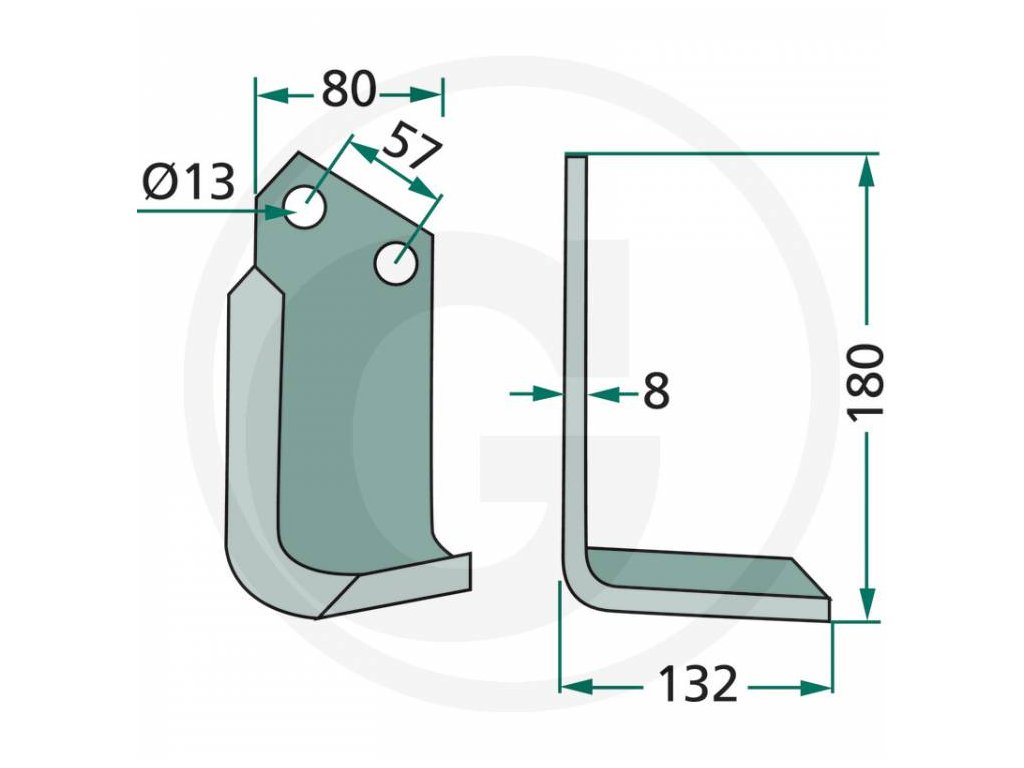 Fräsmesser 132 x 180 MM LINKS PASSEND FÜR HOWARD ROTAVATOR