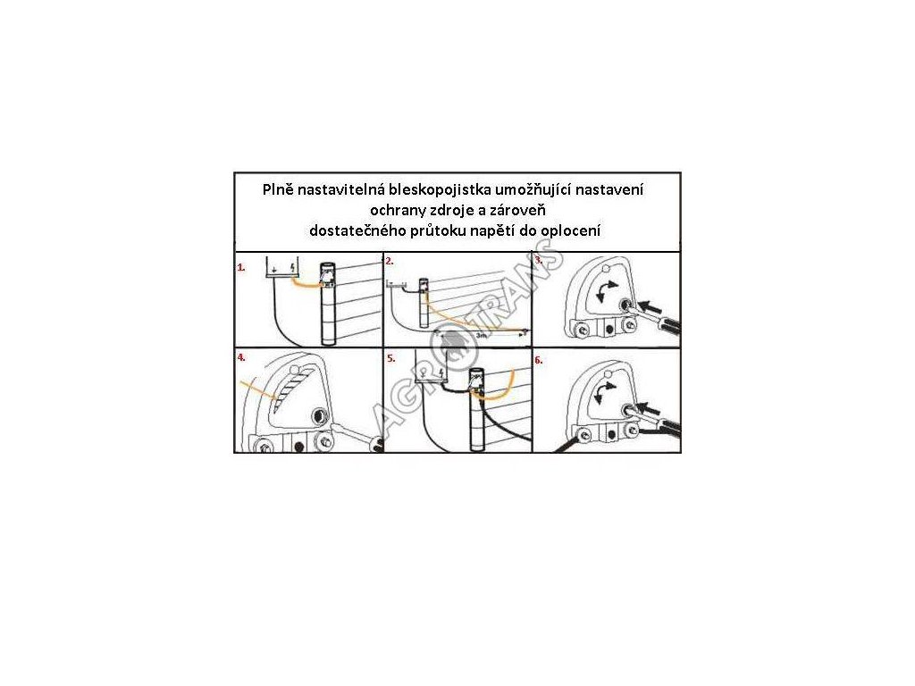 Blitzeinschläge können die Impulsquelle beschädigen. Um die Schäden an der Quelle zu verringern, ist es unerlässlich, eine Blitzsicherung in den Zaun einzubauen und einen Überspannungsschutz zwischen der Quelle und dem Stromnetz zu installieren. Es ist ratsam, in blitzgefährdeten Gebieten 2-3 Blitzableiter in einer Reihe und weitere im Abstand von 500 m zu installieren.