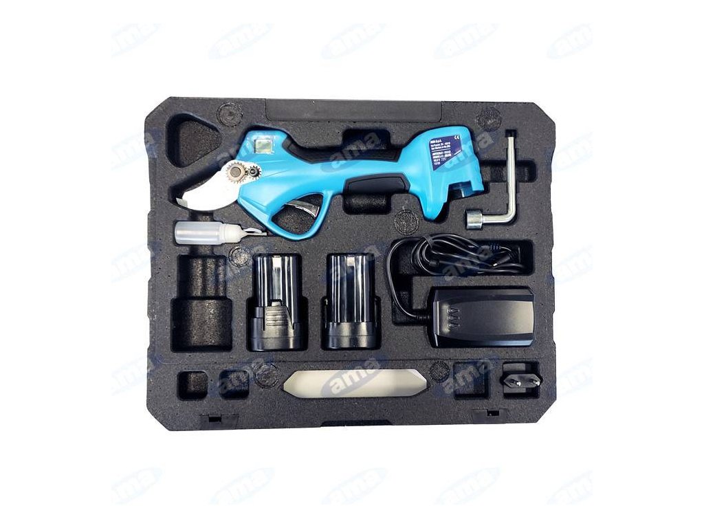AKU Gartenschere 16,8V mit 670W Motor. Im Paket enthalten sind 2 Batterien mit einer Kapazität von 2,5 Ah.