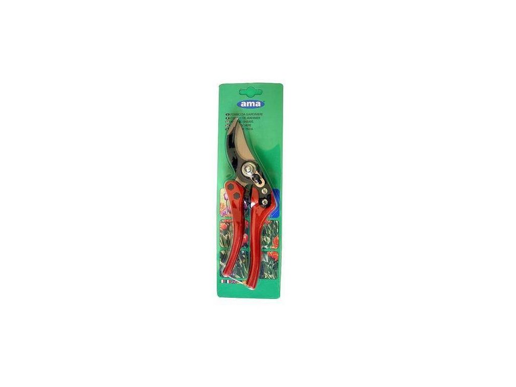 Professionelle Gartenschere 230 mm lang mit gebogener Klinge aus hochwertigem SK5-Stahl und soliden, lackierten Griffen.