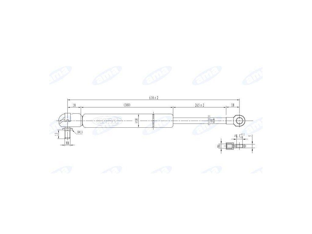 Gasdruckfeder 346mm - 610mm, 350N
