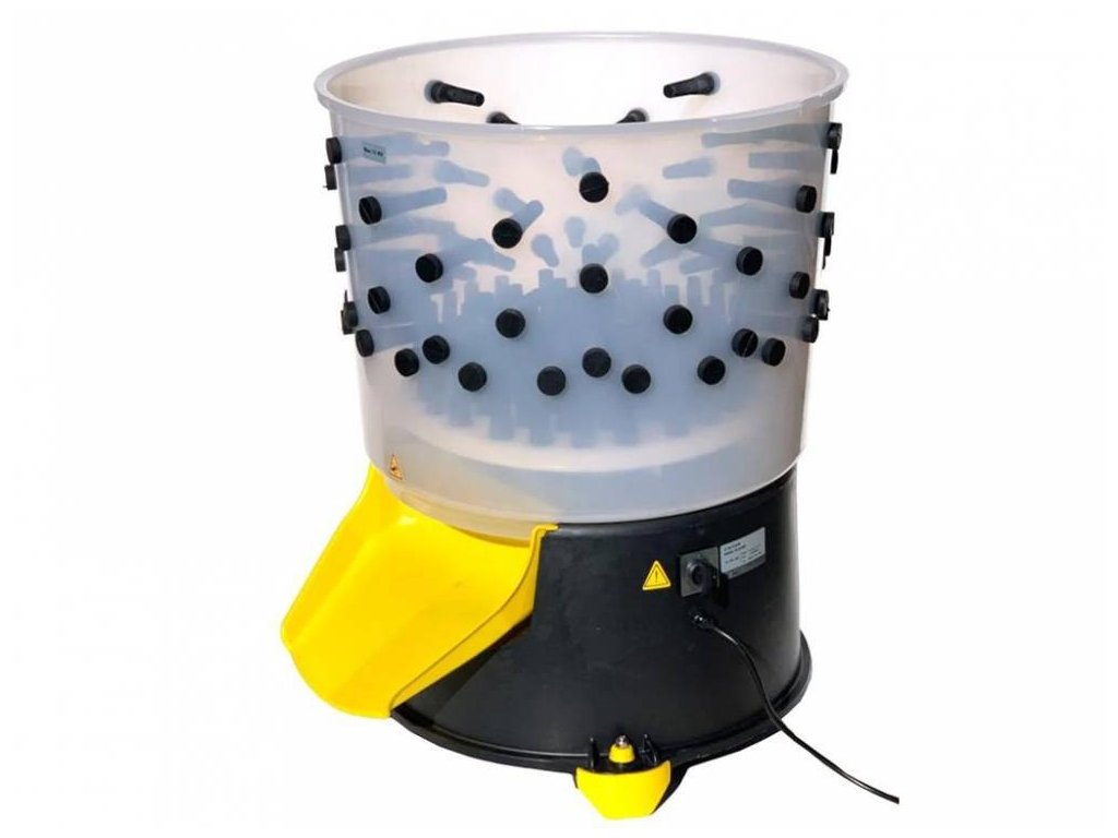 Der Trommelrupfer eignet sich für das Rupfen großer Mengen von Hühnern, Gänsen, Enten und Puten und arbeitet nach dem Prinzip des Nassrupfens von Federn. Der Trommelrupfer bietet eine Kapazität von 1-2 Gänsen, Puten oder 3-4 Hühnern, Enten / Rupfzeit 60-120 Sekunden (max. Belastung 12 kg) - Trommeldurchmesser 54cm. Patentierte "ipluck"-Technologie - Anzahl der Rupffinger 126 Stück, Leistungsaufnahme 600 W - hohe Energieeinsparung im Vergleich zu den Wettbewerbern auf dem Markt.