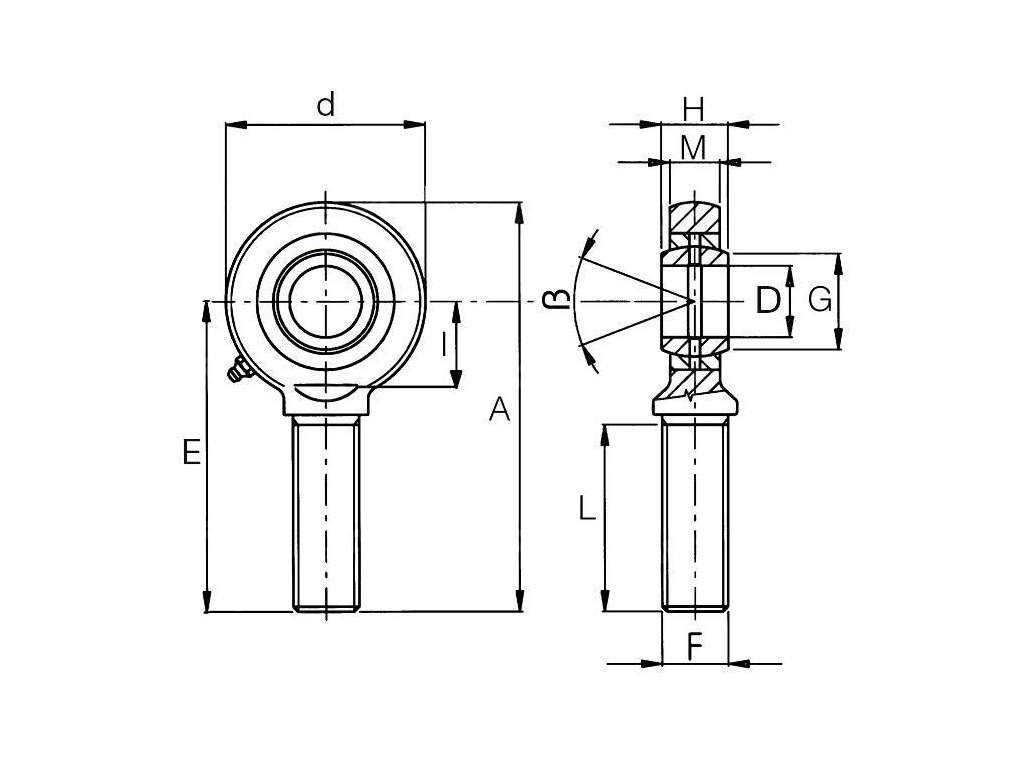 Gelenkkopf 30 mm mit Außengewinde M30x2 und Schmirenippel
