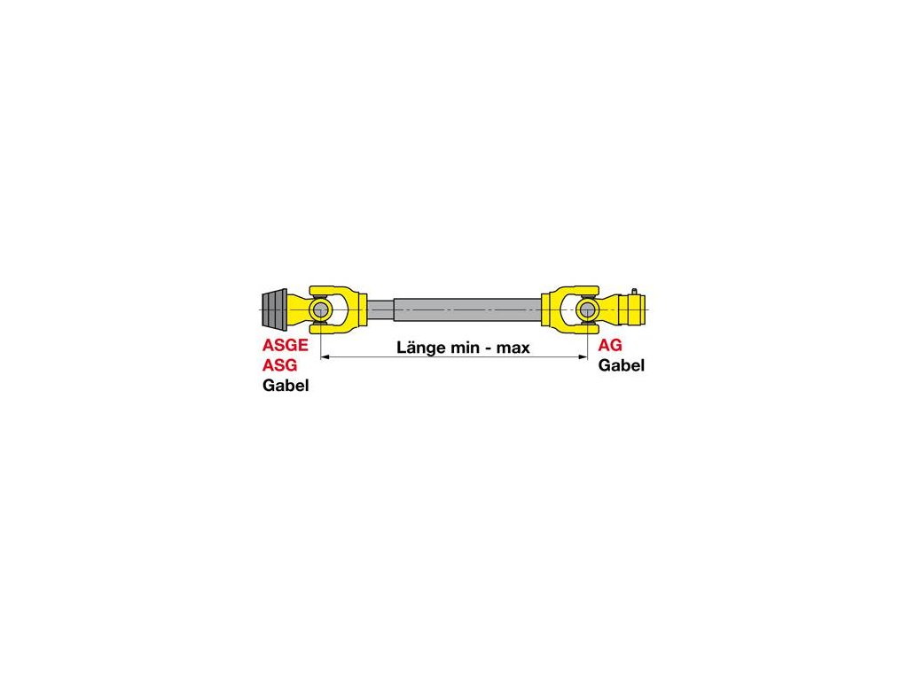 Technische Information: Die Gelenkwelle wird mit Schutzrohren, Typ SD, geliefert, die allen EU-Gesundheits- und Sicherheitsvorschriften gemäß der Richtlinie 89/392/EWG entsprechen. Die entsprechende Konformitätserklärung und Betriebsanleitung liegen der Verpackung bei.