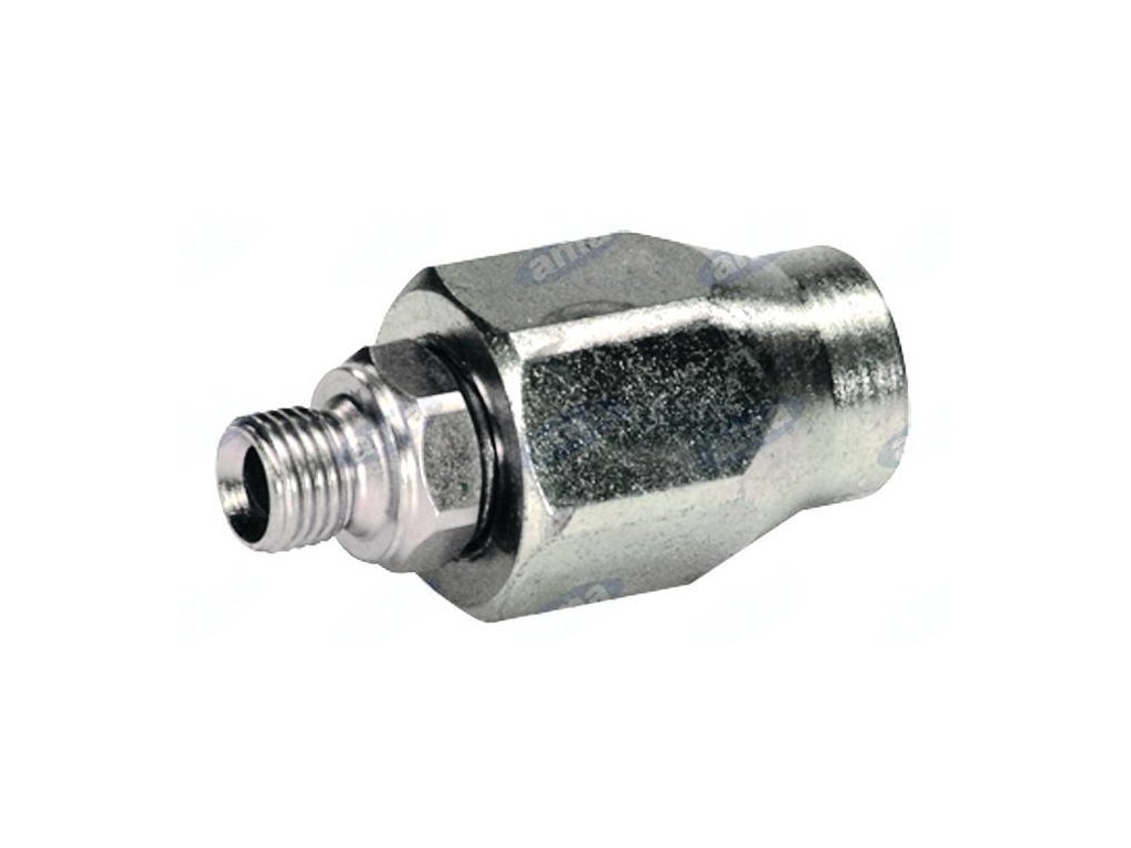 1/2"-Drehkupplung mit BSP-Außengewinde in einem 60-Grad-Innendichtkonus und Innengewinde bündig mit dem anderen Gewinde.