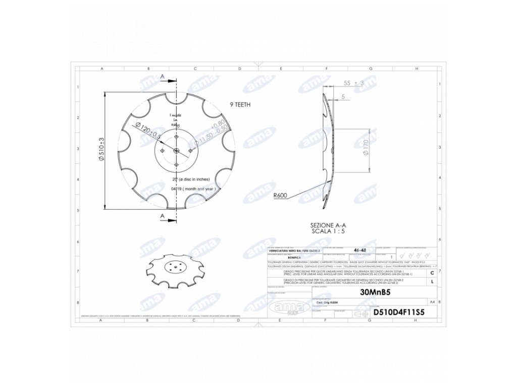 Die Scheiben werden in Italien von AMA NAF hergestellt, einem Unternehmen, das auf die Produktion von Scheiben, Mähmessern, Drehtorspikes und anderen landwirtschaftlichen Komponenten spezialisiert ist. Für die Herstellung der Scheiben wird ausschließlich Kiefernstahl verwendet, der für diese Art von Produkten am besten geeignet ist und ihnen die notwendige Flexibilität und Haltbarkeit verleiht. Die Klingen werden dann durch ein einzigartiges Warmwalzverfahren hergestellt. Die so hergestellte Klinge hat eine sehr lange Lebensdauer.