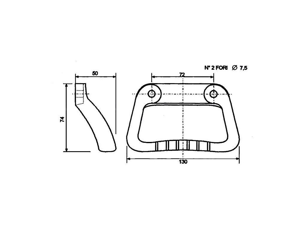 Länge 130 mm, Höhe 74 mm, Lochabstand 72 mm.