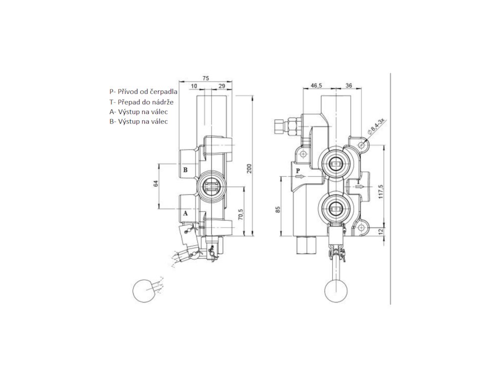 Mit arretierbarem Steuerhebel für die Rückläufe des Kolbens. Bei Erreichen der oberen Position (der Kolben in eingefahrener Stellung) kehrt der Hebel automatisch in die Neutralstellung zurück. Dies ist in die Konstruktion des Verteilers eingebaut.