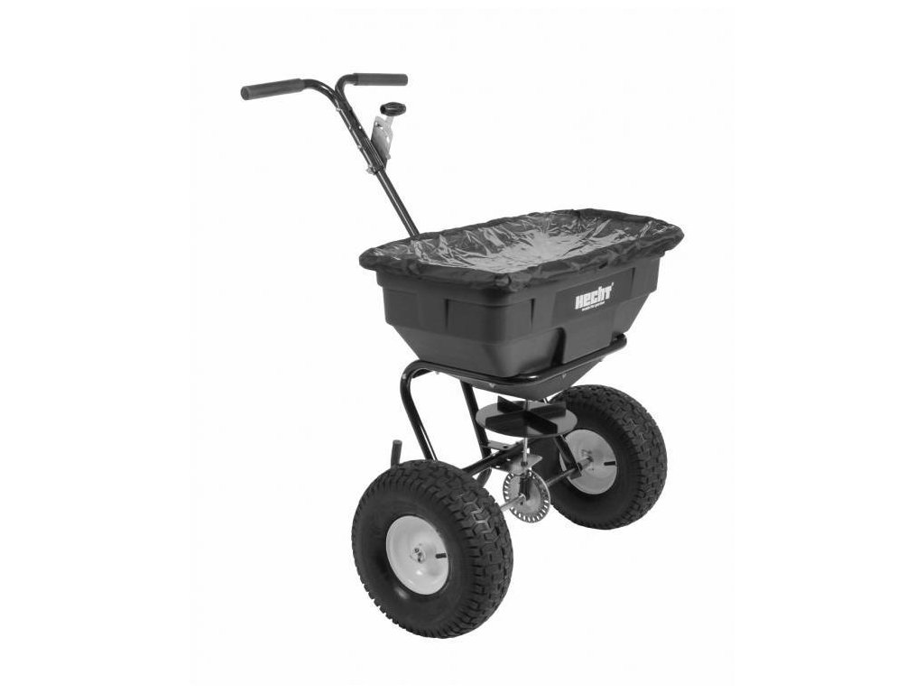 Handgeführter Streuer für die regelmäßige Pflege größerer Flächen. Durch die großen, hochwertigen Räder ist er sehr leicht zu fahren. Der Antrieb erfolgt über hochwertige Metallzahnräder von den Laufrädern aus. Dadurch wird eine relativ gleichmäßige Ausbringung der Fläche gewährleistet - die ausgebrachte Materialmenge ist direkt proportional zur zurückgelegten Strecke. Die Streuintensität lässt sich direkt am Griff mit einem Hebel leicht einstellen. Der Vorratsbehälter fasst bis zu 60 Liter Saatgut, Dünger oder Salz und ist mit einem Sieb ausgestattet, um Verstopfungen des Streumechanismus zu vermeiden. Eine Abdeckung des Behälters ist ebenfalls im Lieferumfang enthalten.
