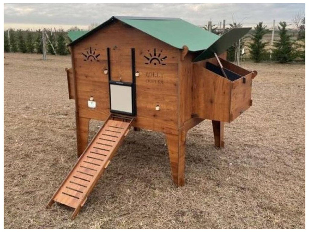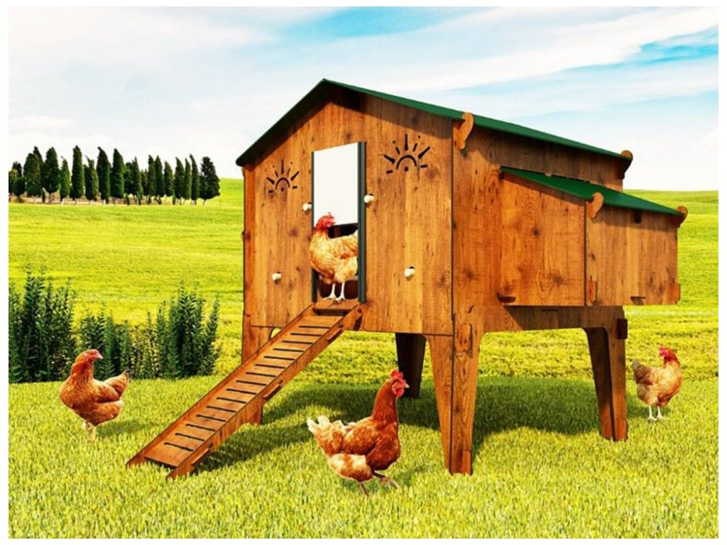 Hühnerstall für 15-20 Hühner, 4 externe Legenester, 4 Schlafplätze, Hochstall auf Beinen, HPL-Laminat, Maße: 195x120x142 cm. Wenn Sie einen Stall für 20 Hühner suchen, dann haben wir einen tollen Tipp für Sie. Dieser sehr praktische Hochstall auf Füßen bietet den Hennen Tag und Nacht einen tollen Hintergrund. Der Stall ist mit vier Schlafplätzen für die Nachtruhe der Hühner und vier Legenestern für eine komfortable Eiablage ausgestattet. Dank seiner natürlichen Wärmedämmung bietet der Stall den Hennen bei warmem und kaltem Wetter eine komfortable und sichere Umgebung. Dieser Stall schützt die Hühner vor einer Vielzahl von Raubtieren und vor allen Wetterbedingungen. Die Reinigung des Stalls ist dank der Tür auf der Rückseite des Stalls kein Problem. Der Hühnerstall ist aus sehr hochwertigem und langlebigem Material gefertigt und wird Ihnen viele Jahre lang dienen.