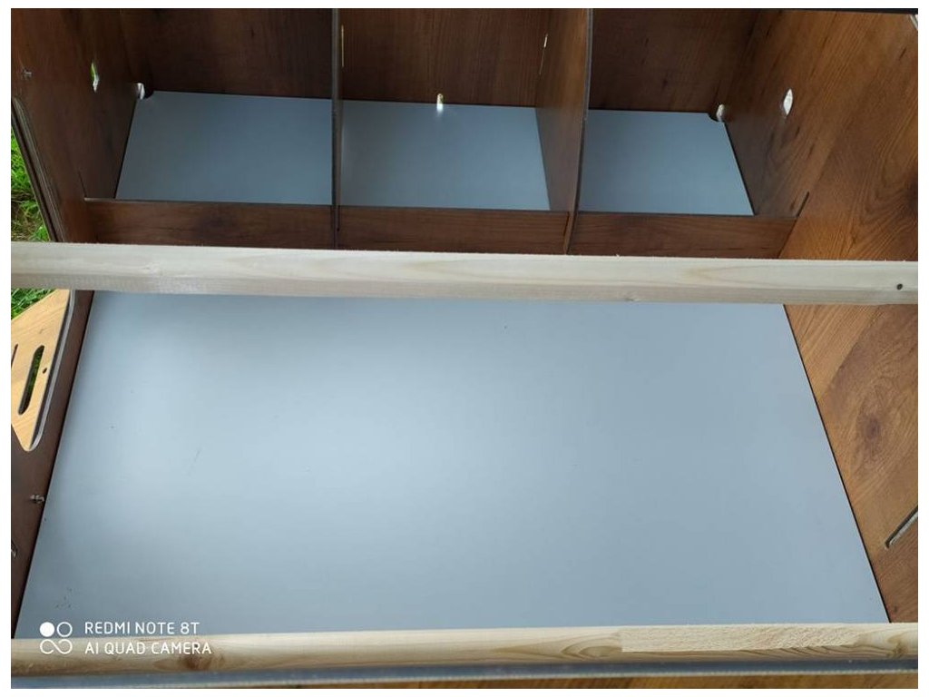 Hühnerstall für die Haltung von 6-8 Hennen mit den Maßen 120x100x100 cm. Es handelt sich um einen sehr komfortablen Hühnerstall, der mit zwei Schlafplätzen, drei internen Legenestern und einem aufklappbaren Dach ausgestattet ist. Der Hühnerstall ist aus hochwertigem HPL-Laminat gefertigt, das sehr robust, glatt, pflegeleicht und sehr widerstandsfähig gegen den Befall durch verschiedene Parasiten, insbesondere Hummeln, ist.