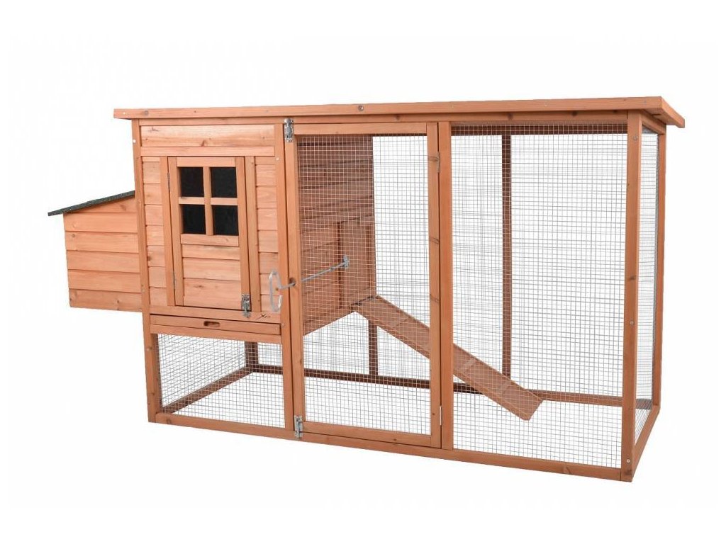 Hühnerstall TWEETY - Abmessungen 201 x 68 x 102 cm. Hergestellt aus haltbarem Tannenholz. Asphaltdach mit der Möglichkeit der Öffnung, hängende Box, Schließen für die Nacht.