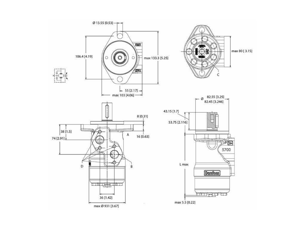 DANFOSS Hydraulikmotor der Serie OMP X 100 mit 25 mm Welle und SAE A Flansch