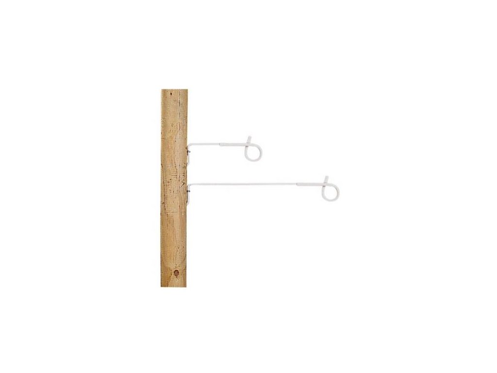 Isolator zur Vorverlegung des Leiters vor Umzäunungen aus anderem Material. Abstandshalter 40cm. Durchmesser des Isolators: 12 mm. Wird mit Klammern K 091 an den Pfosten befestigt, nicht im Lieferumfang enthalten. Farbe braun/weiss.