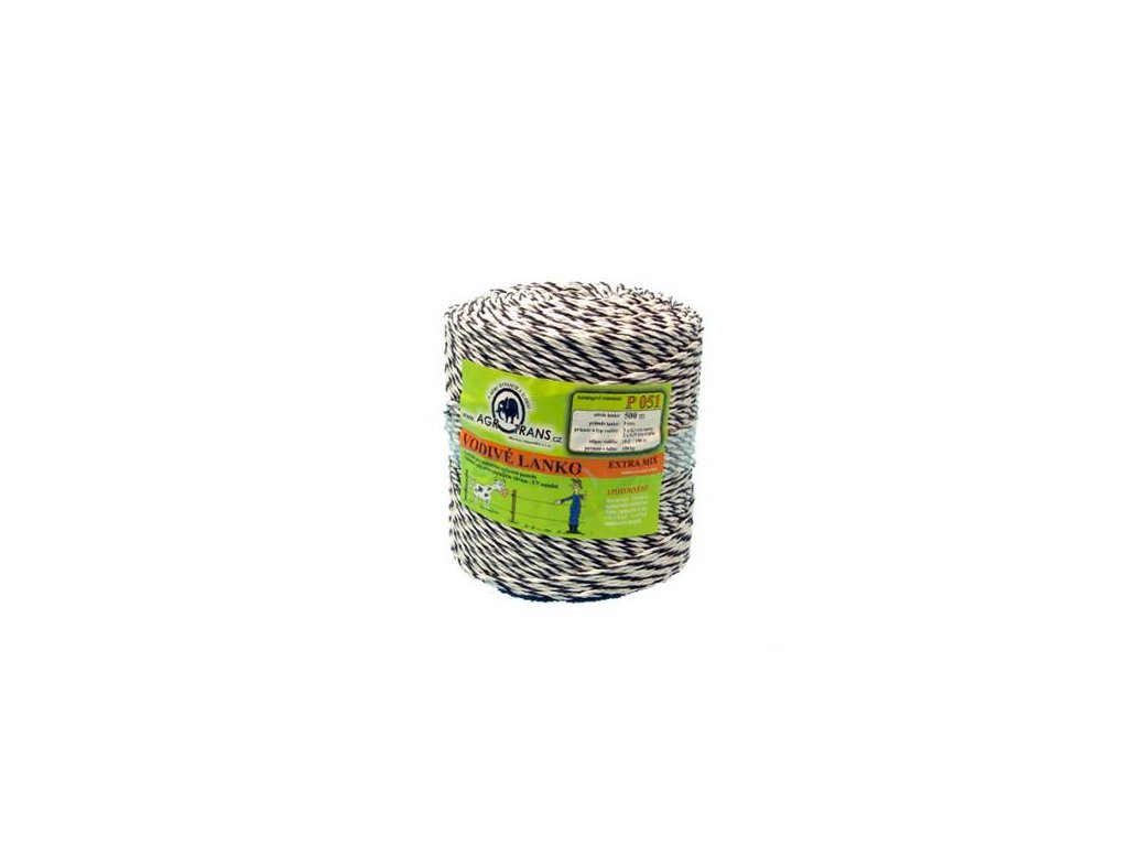Leitfähiges Kabel mit erhöhter Leitfähigkeit mit 5 Leitern. 500m Länge. Farbe weiß mit schwarzen Fasern. Geeignet für Schafe.