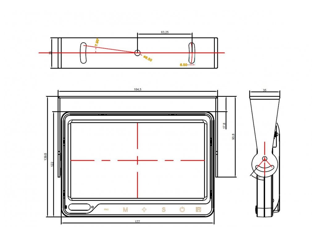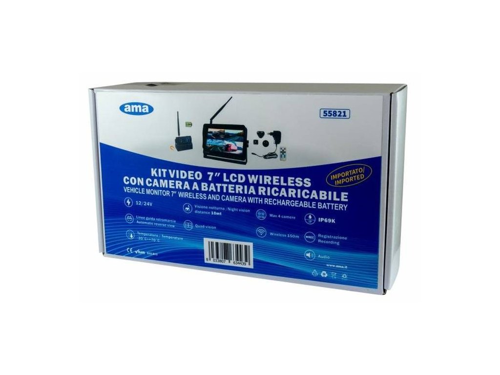 Farbmonitor: 7" AHD, ‐ Helligkeit: 450 cd/M², ‐ Kontrast: 500:1; ‐ ‐ Radiofrequenz: 1HMHz; ‐Sendeleistung : 27dBm; ‐ Frequenzband: 2400- MHZ: 2400-28 Z Modulation 16QAM/QPSK/BPSK.