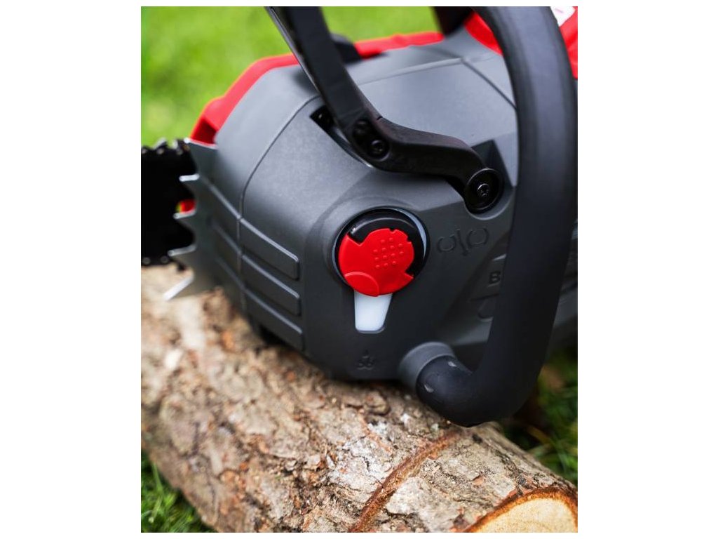 - Die Sicherheit wird durch die integrierte Kettenbremse gewährleistet, die die Kette im Falle einer Blockierung sofort stoppt, z.B. im Falle eines Rückschlags