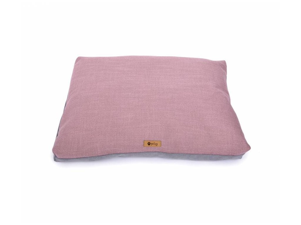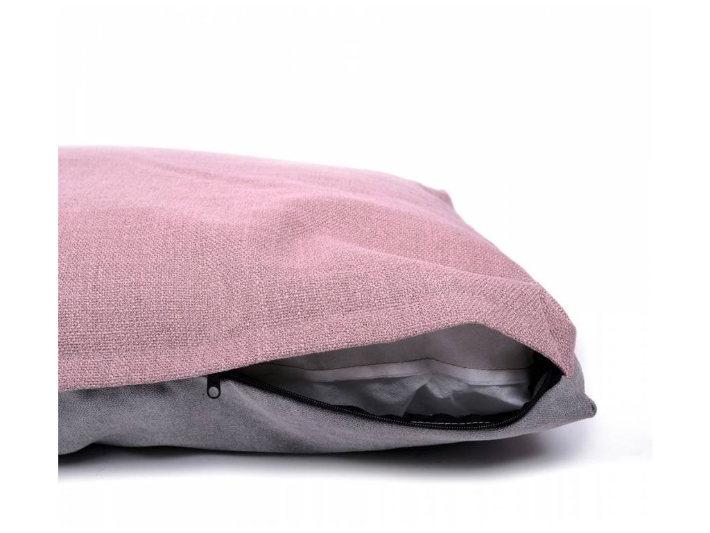 Das Kissen ist wendbar. Auf einer Seite strapazierfähiger und starker Stoff in altrosa Farbe.
