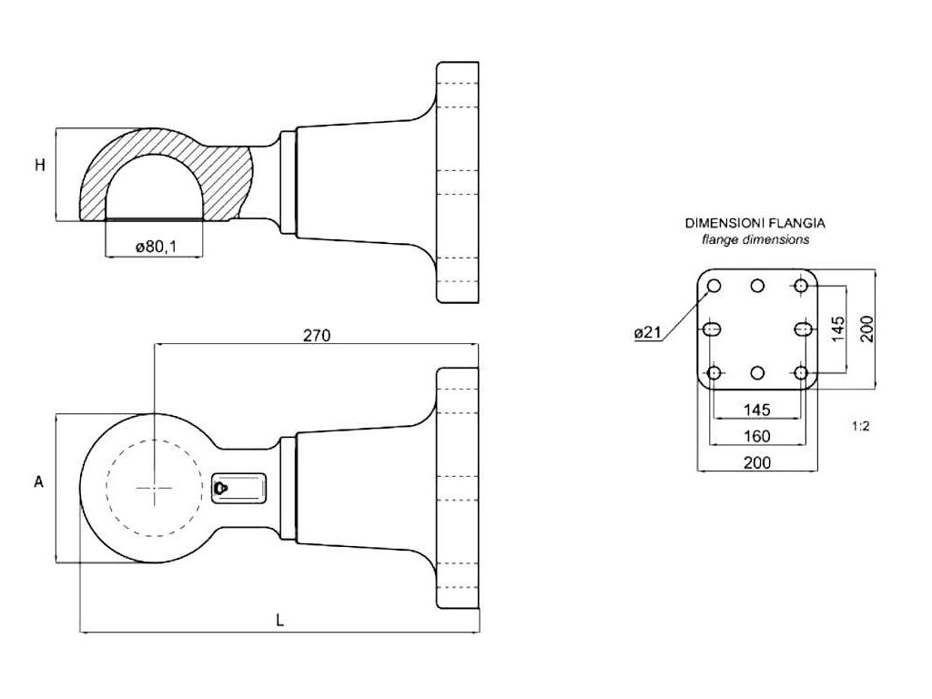 Kugelzugöse 80mm - Drehbar mit Flansch