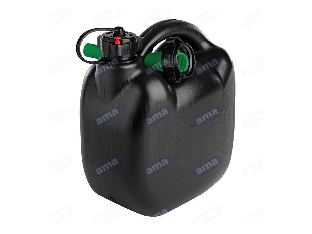 Schwarzer Kunststoffkanister mit flexiblem Auslauf. 20 l